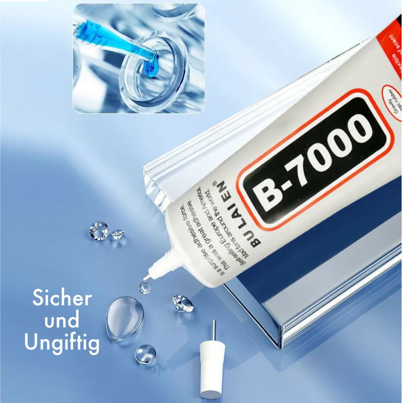Zusätzliche Empfehlung:Wir empfehlen Ihnen, den B-7000 Kleber bevorzugt in einer lokalen Einzelhandelsfiliale zu kaufen. Dies ist in der Regel günstiger und schneller. Eine Bestellung über unseren Onlineshop ist vor allem sinnvoll, wenn Sie in Ihrer Nähe keine geeigneten Produkte finden und die Lieferzeit für Sie nicht ausschlaggebend ist. Bitte beachten Sie, dass die Lieferzeit für separat bestellten Kleber bis zu 2 Wochen oder länger dauern kann. Wir arbeiten jedoch kontinuierlich daran, effizientere Lieferlösungen zu entwickeln.
