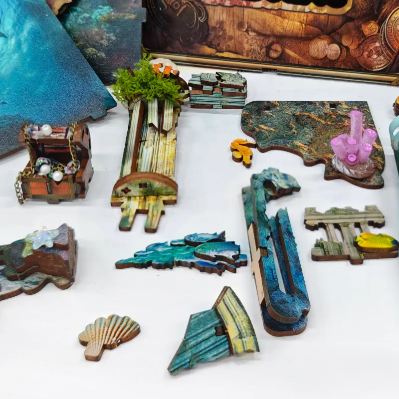 Dieses DIY 3D-Puzzle besteht aus präzise geschnittenen Holzteilen, die Sie mit Klebstoff zu diesem Meisterwerk zusammensetzen. Die besondere Mechanik, wie der drehbare Hintergrund, der die Bewegung des Meeres simuliert, und die durchbrochene Rückwand, die einen Einblick in die Tiefe gewährt, machen den Aufbau zu einem faszinierenden Erlebnis.