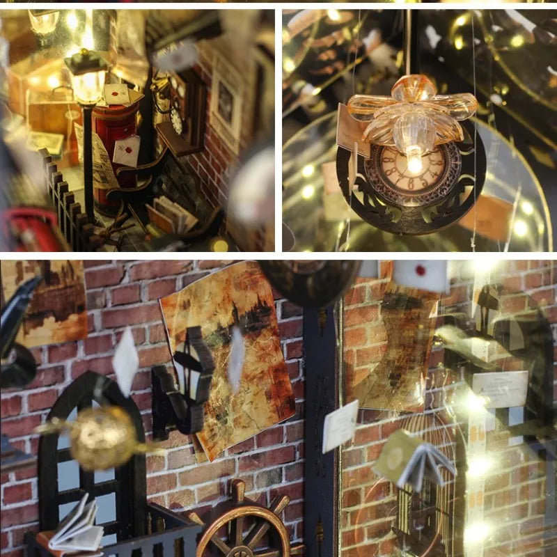 Treten Sie ein in eine Welt voller Wunder und Illusionen mit unserem Fantasy Train Platform Book Nook. Dieses kunstvolle Miniaturdiorama verwandelt Ihr Bücherregal in ein geheimnisvolles Steampunk-Portal, das eine unendlich scheinende Bahnsteigszene offenbart. Durch ein raffiniertes optisches Reflexionsprinzip entsteht eine magische Tiefenwirkung, die den Betrachter in eine längst vergangene Ära entführt, wo Dampf und Kerzenlicht die Atmosphäre bestimmen. Es ist ein Meisterwerk der Miniaturkunst, das mit seiner filigranen Nachbildung von Ziegelsteintexturen und nostalgischen Elementen eine Brücke zwischen Realität und Fantasie schlägt.