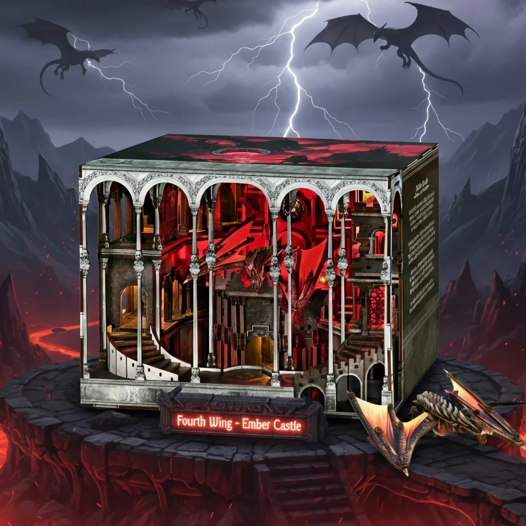 Ob für dich selbst oder einen anderen Fan der Flammengeküsst-Saga, das „Ember Castle“ Book Nook ist ein unvergessliches Geschenk, das die Leidenschaft für diese einzigartige Welt zelebriert. Erschaffe ein Stück von Violets Abenteuer und lass dein Bücherregal in der Magie von Fourth Wing erstrahlen.