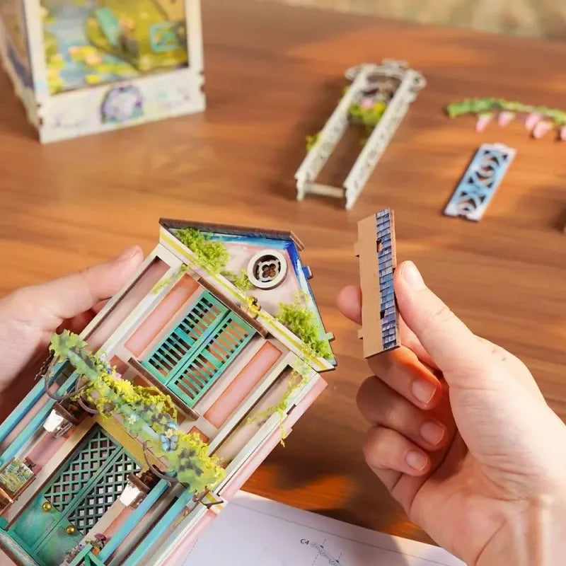 Tauchen Sie ein in das bezaubernde Giverny Garden Book Nook, das die magische Atmosphäre von Monets Garten einfängt. Dieses Miniatur-Haus verwandelt Ihren Bücherschrank in ein impressionistisches Meisterwerk mit detailreichen Elementen wie der japanischen Brücke, schimmernden Seerosen und sanftem LED-Licht, das den Morgenlicht-Effekt perfekt nachahmt. Ein wahrer Blickfang für Kunst- und Naturliebhaber!