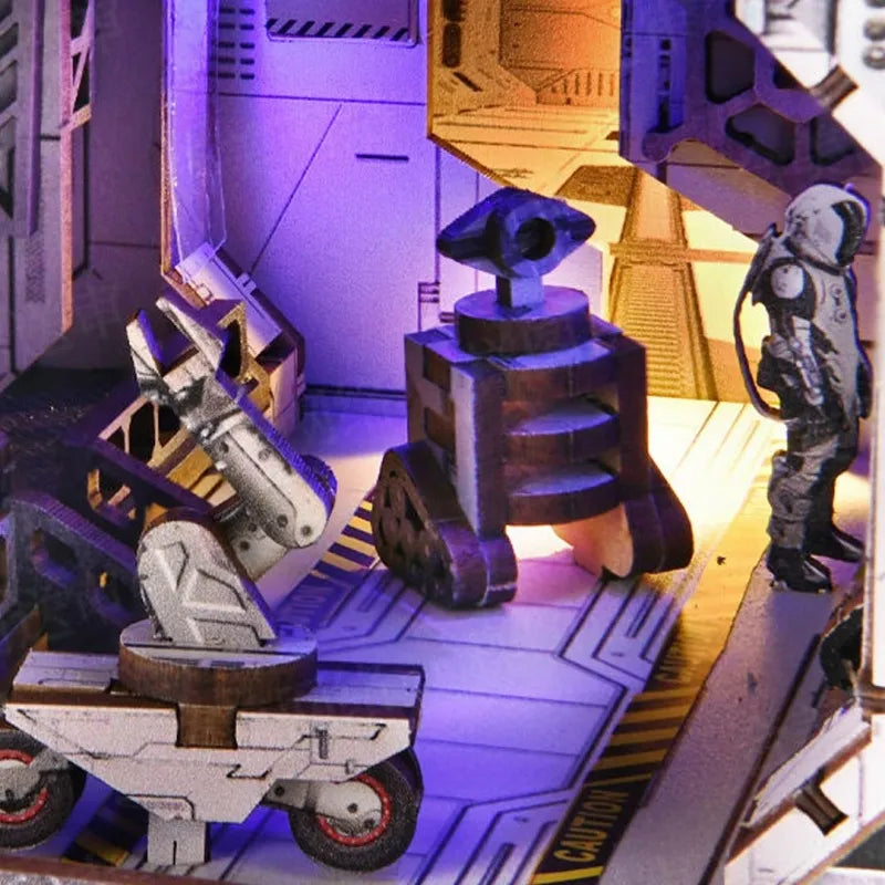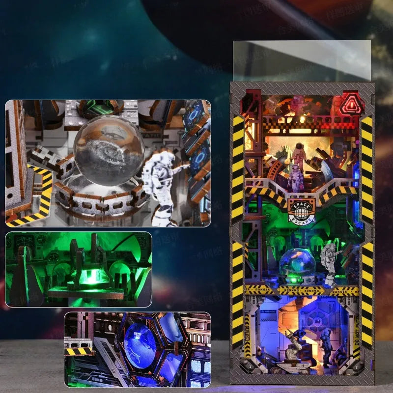Das Interstellar Home Book Nook ist ein sorgfältig gestaltetes Book Nook, inspiriert von der neuen Lebensweise und der geistigen Stärke der Menschheit im Universum. Es ist nicht nur ein Bücherregal, sondern eine immersive Nachbildung eines historischen Moments. Jedes Detail zeigt präzise die Szenen eines interstellar lebenden Haushalts in einer schwebenden Raumstation und verleiht Ihrem Bücherregal sofort einen futuristischen und science-fiction-inspirierten Charme. Ob als Dekorationsstück oder als Begleiter für Ihre Bücher, es fügt Ihrem Leseplatz eine einzigartige kosmische Atmosphäre hinzu.