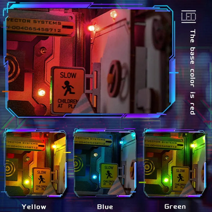 Das „Mechanical Celebration“ Book Nook ist inspiriert von der faszinierenden Kombination aus Stahl und Punk. Wir haben ein einzigartiges, spielerisches Bücherregal-Spielzeug geschaffen. Das Produkt verfügt über bunte LED-Leuchten, die ein neonähnliches, lebhaftes Erscheinungsbild erzeugen. Nach der Montage kann man durch Betätigung des Hebels den Schwenkarm aktivieren und die Kugeln zurückschnellen lassen.