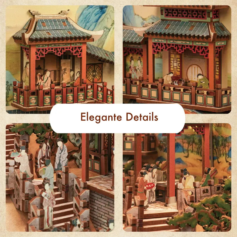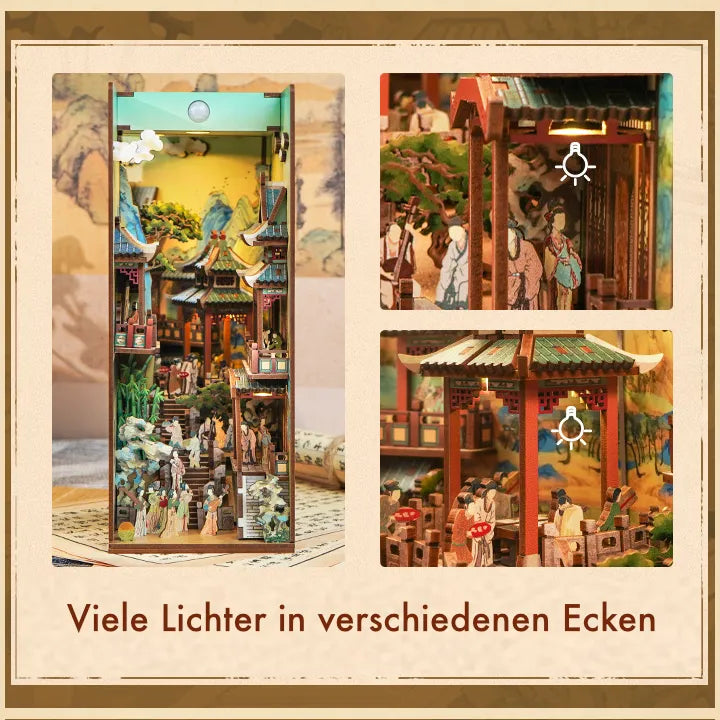 DIY Book Nook - Song Dynasty Culture lässt Sie durch die Zeit reisen und in die malerische Welt der Song-Dynastie eintauchen. Erleben Sie die Ruhe und Weisheit der Gelehrten, die inmitten von Landschaften, Musik, Schach und Malerei Inspiration fanden. Dieses Miniaturszenario fängt das Wesen der Song-Kultur ein und lädt Sie ein, im hektischen Alltag innezuhalten und die Eleganz und Tiefe der alten chinesischen Zivilisation zu genießen.