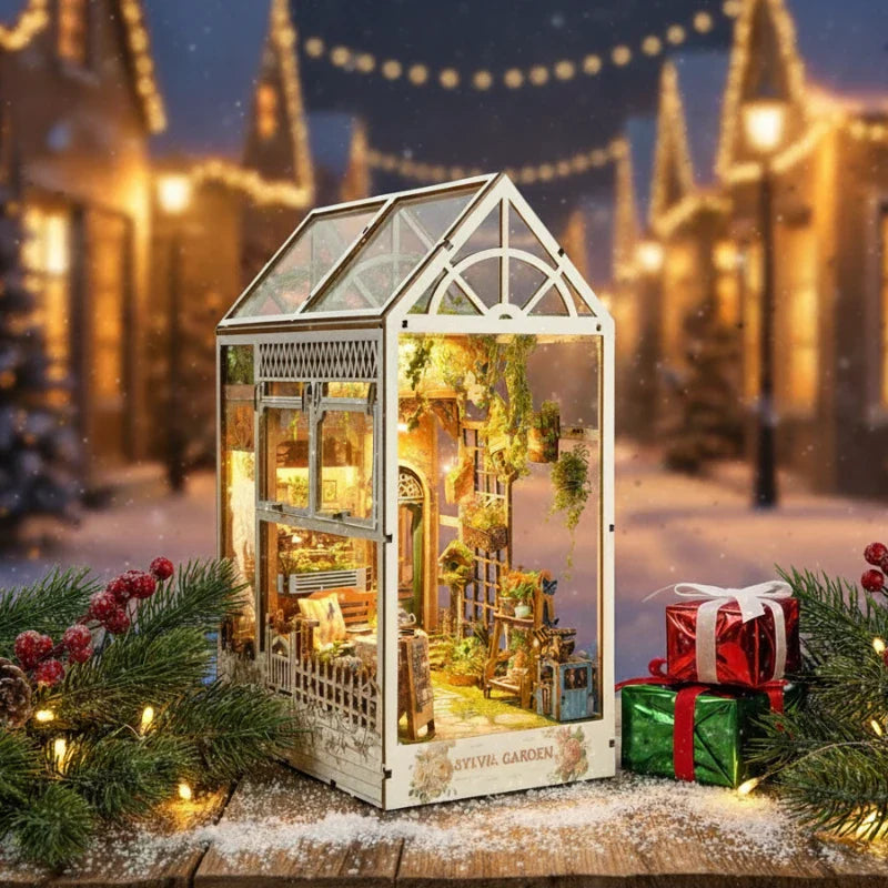 Das Geheimnis des Gartens verbirgt sich im Dach, wo Sie das Dachfenster öffnen und die Abendbrise genießen können. Dieses Book Nook bringt die Farben des Frühlings auf Ihr Bücherregal und lässt Sie die Freude am Lesen in der Wärme der Sonne neu entdecken.